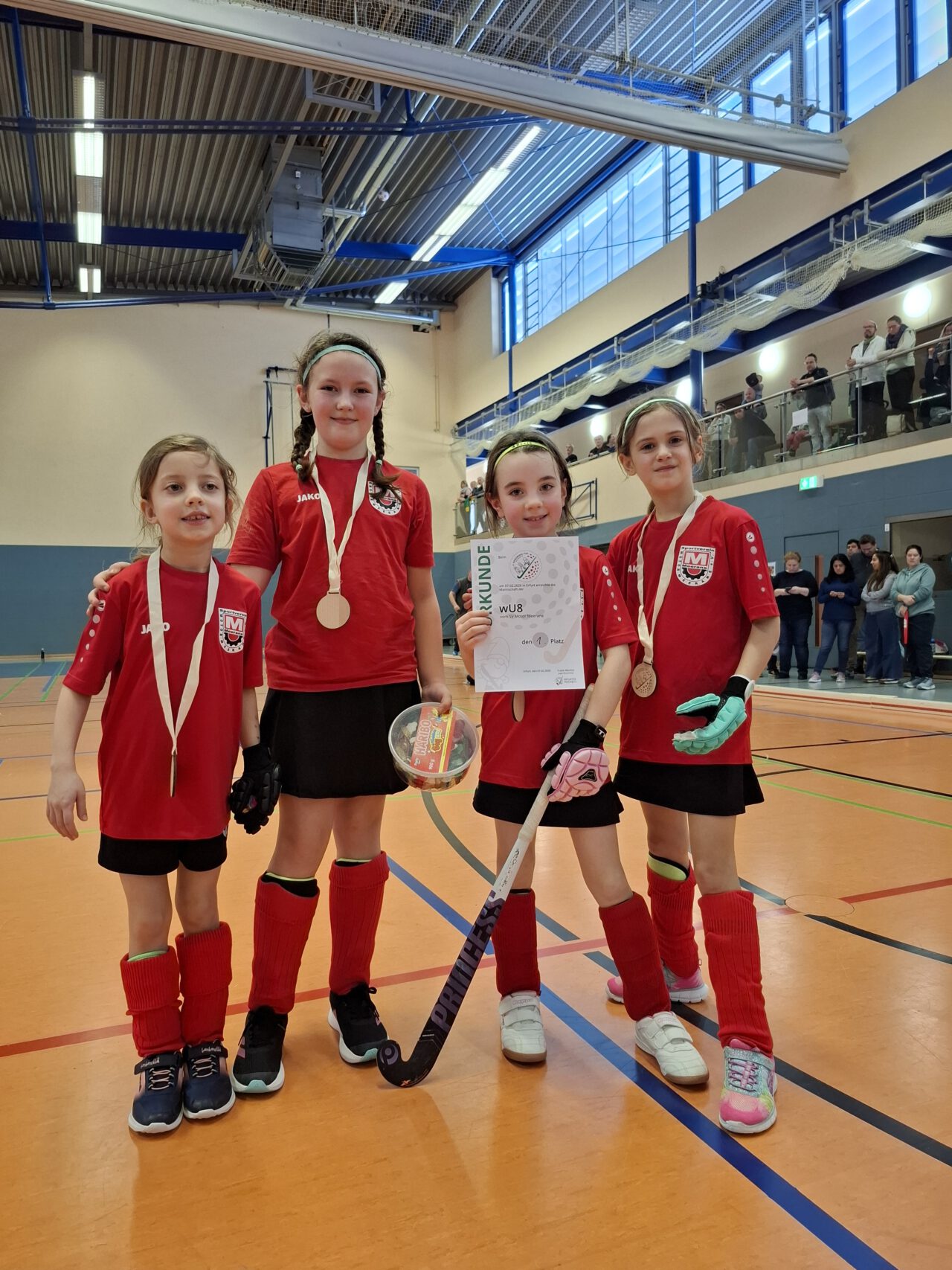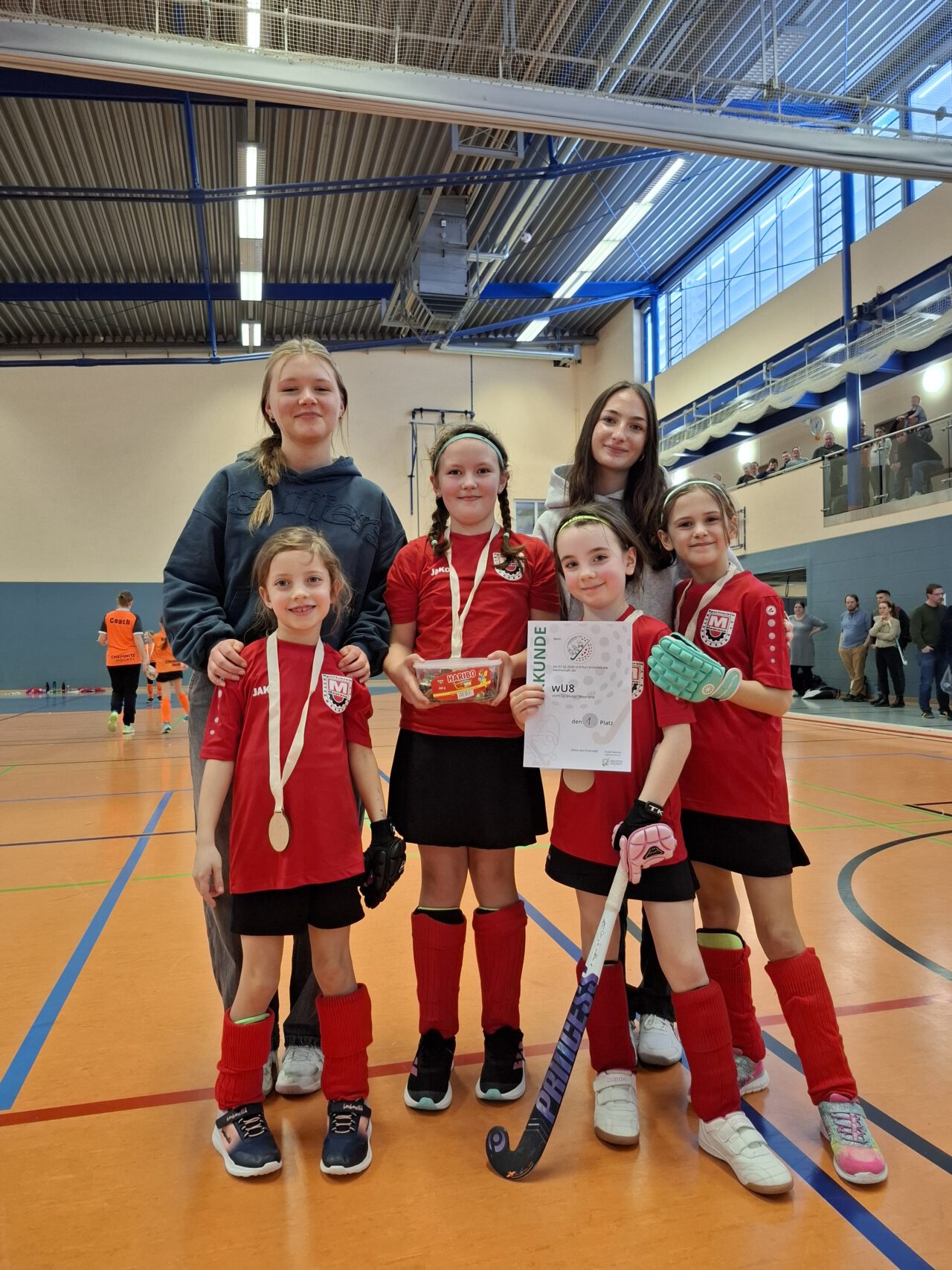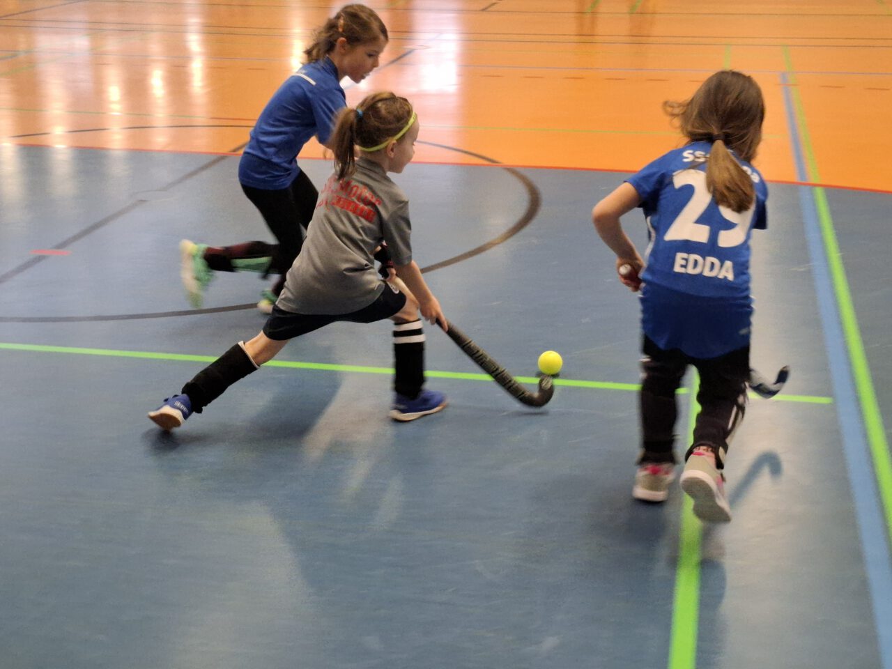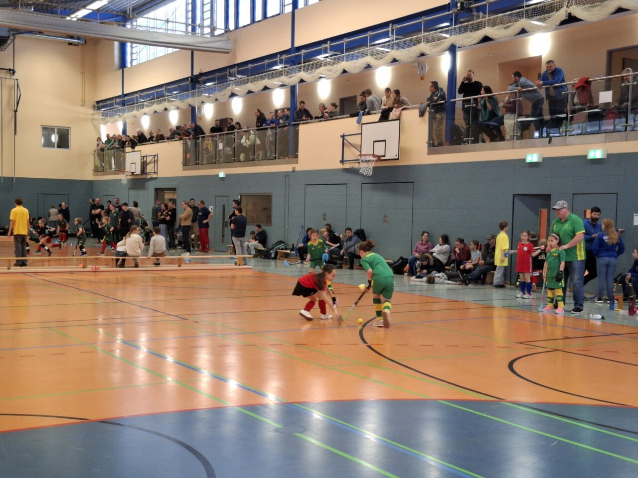 Samstag – 7.2. 2026: Neblig, Nieselregen, kalt und wieder einmal gaaanz zeitig… Wir trafen uns wie immer auf dem Parkplatz vor der Freiberger Halle und starteten mit einer gut aufgestellten Mini/U6 – Mannschaft und einer stark dezimierten wU8-Mannschaft. 2 unserer Spielerinnen hat es leider erwischt, sie waren krank und konnten nicht mit. Wir hatten mit Emilia und Jasmin 2 „alte Hasen“ und mit Lynn eine ganz neue Spielerin, die erst seit dieser Hallensaison überhaupt Hockey spielt, dabei: Mit nur 3 Spielerinnen und der Zusage aus Erfurt mehrere Spielerinnen ausleihen zu dürfen starteten wir nach Erfurt. Unser Trainier Andreas spielte schon ein paar Tage in Gedanken damit Marie von unseren Minis (U6) mit den großen Mädels spielen zu lassen und setzte die Idee zum Glück auch um. Und was soll man sagen? – eine sehr gute Entscheidung.