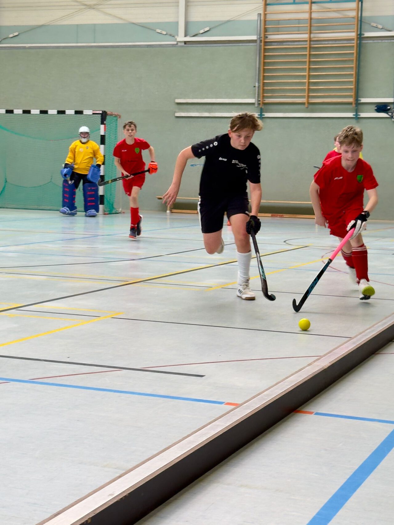 Das Spiel entwickelte sich zu einem echten Kampf. Jeder Ball wurde hart umkämpft, beide Teams schenkten sich nichts. In der 10. Minute hatte Toni nach einem schön herausgespielten Angriff die Führung auf dem Schläger – doch sein Schuss strich knapp am Tor vorbei.