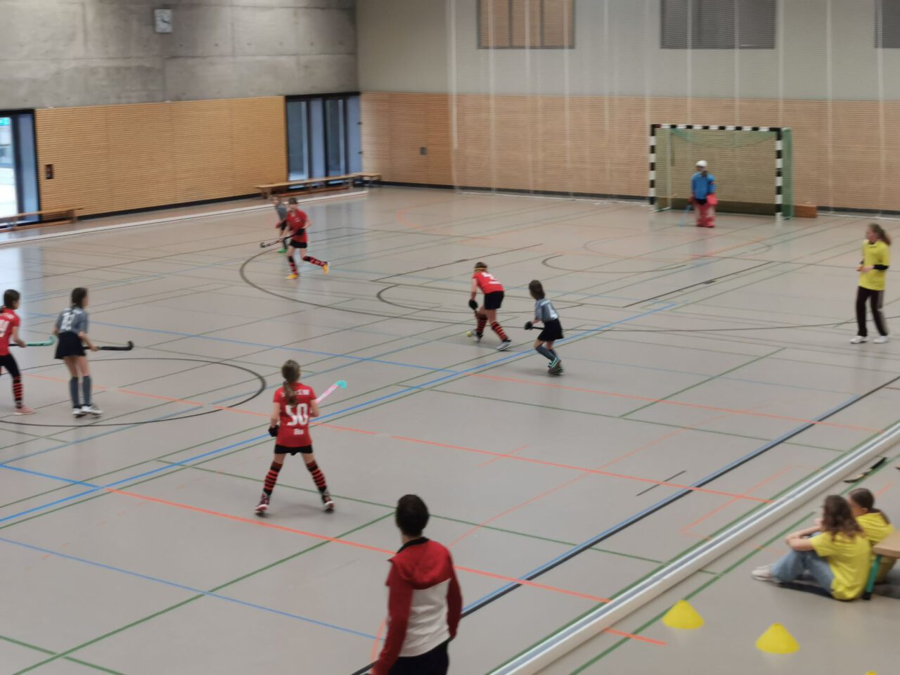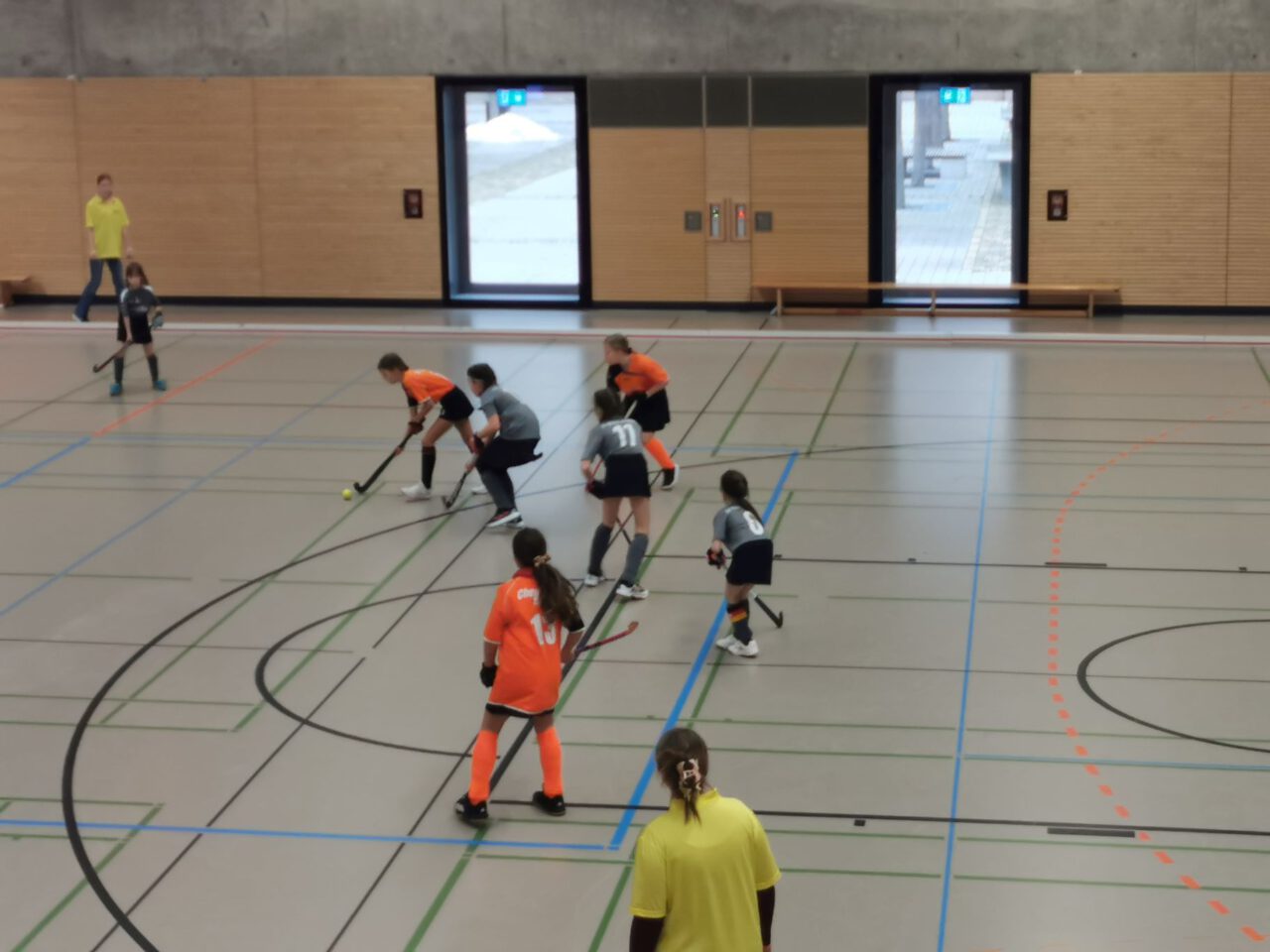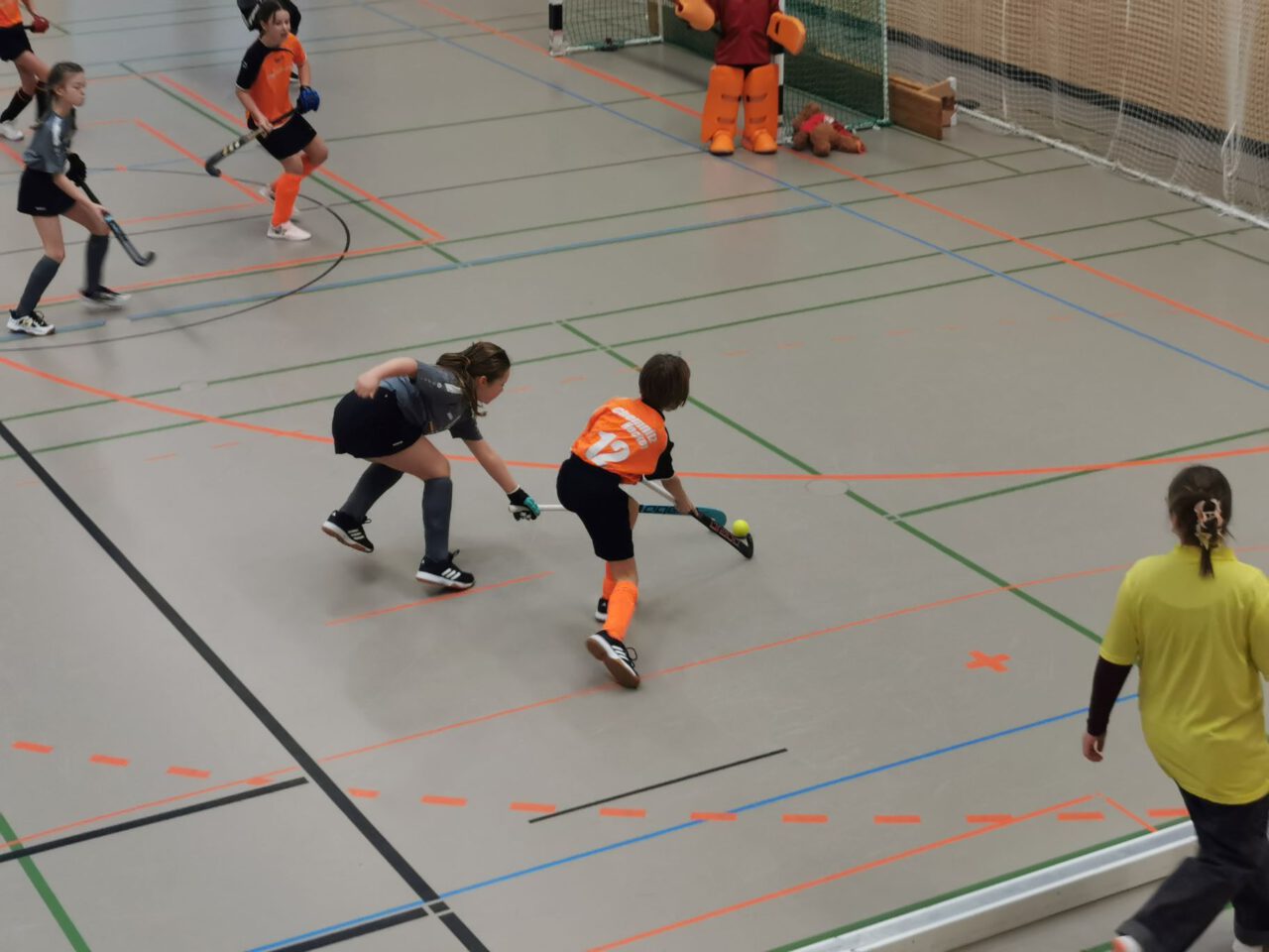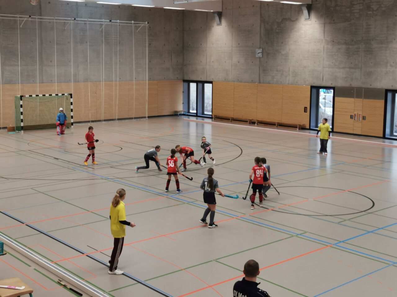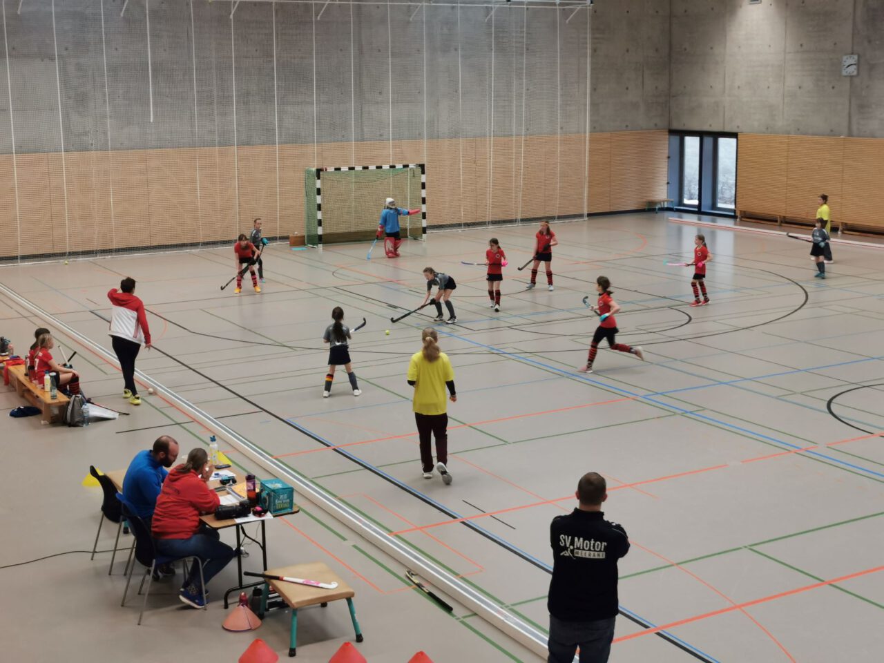 Nach über einer Stunde Fahrzeit, hieß es schnell die Hockeyausrüstung anlegen, das richtige Trikot anziehen und ab in die Halle zum Warmspielen.