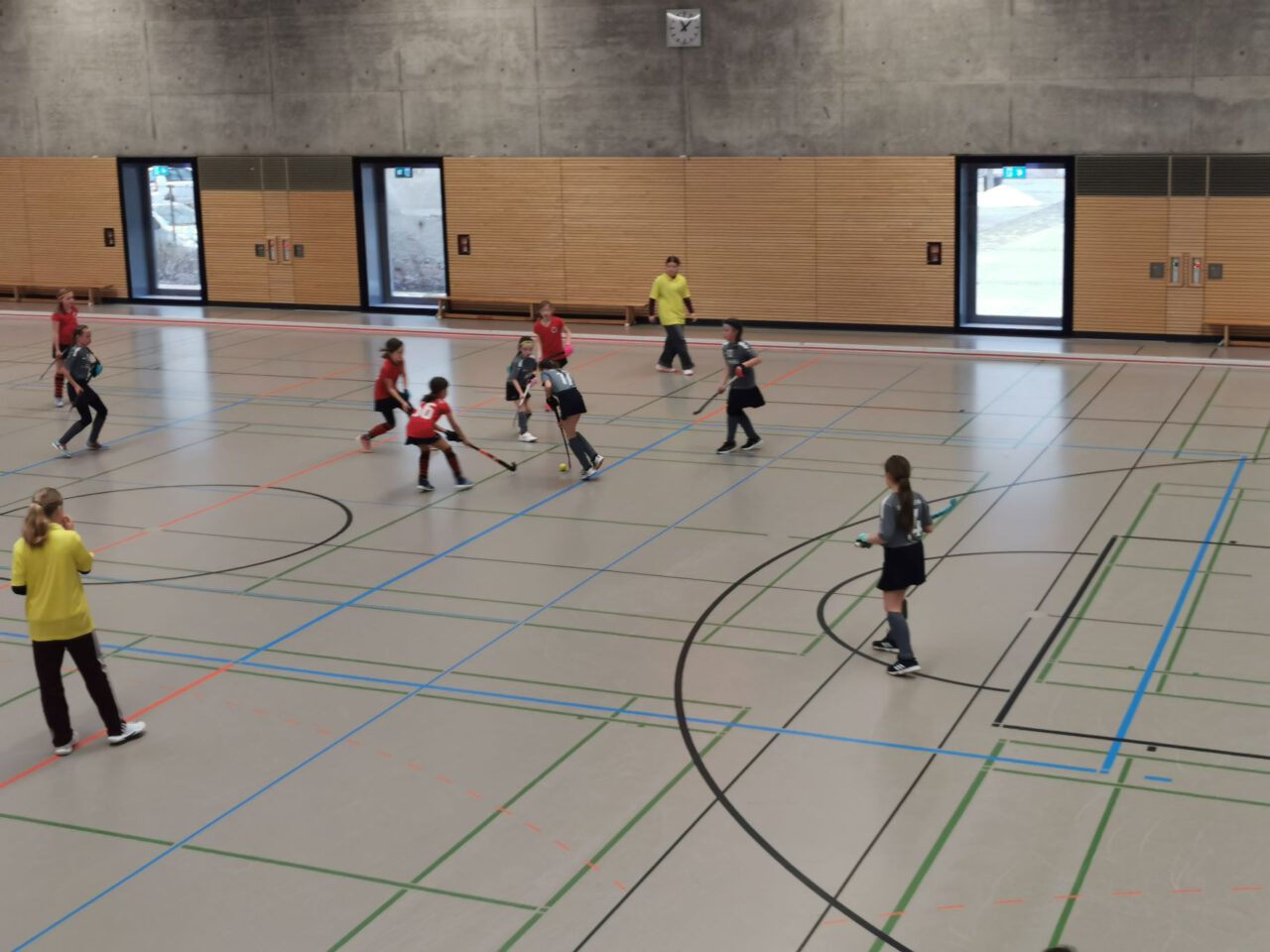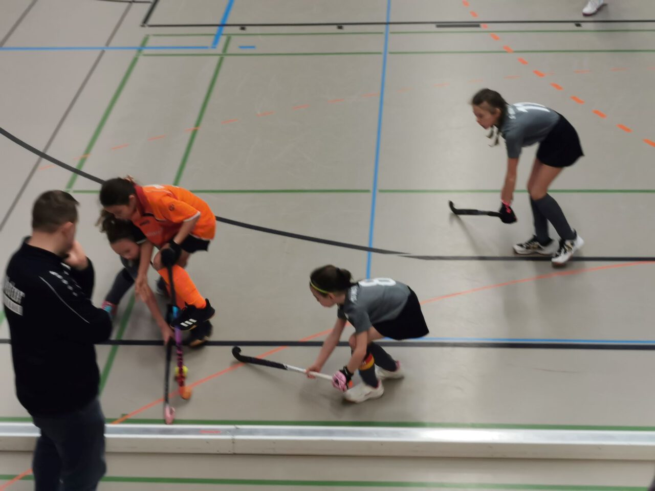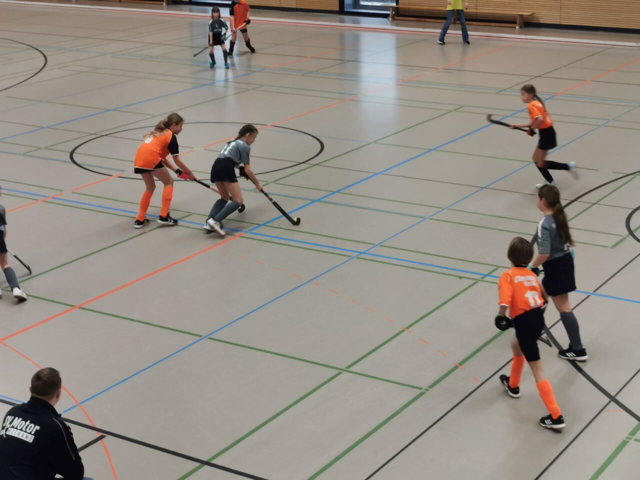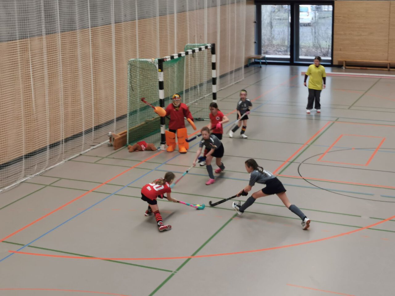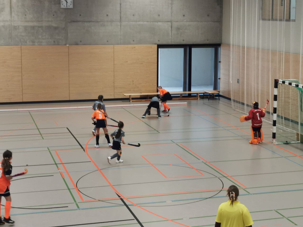 Nach über einer Stunde Fahrzeit, hieß es schnell die Hockeyausrüstung anlegen, das richtige Trikot anziehen und ab in die Halle zum Warmspielen.