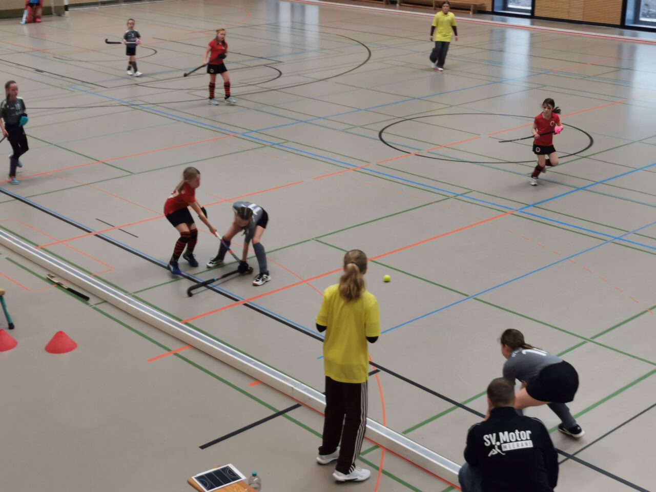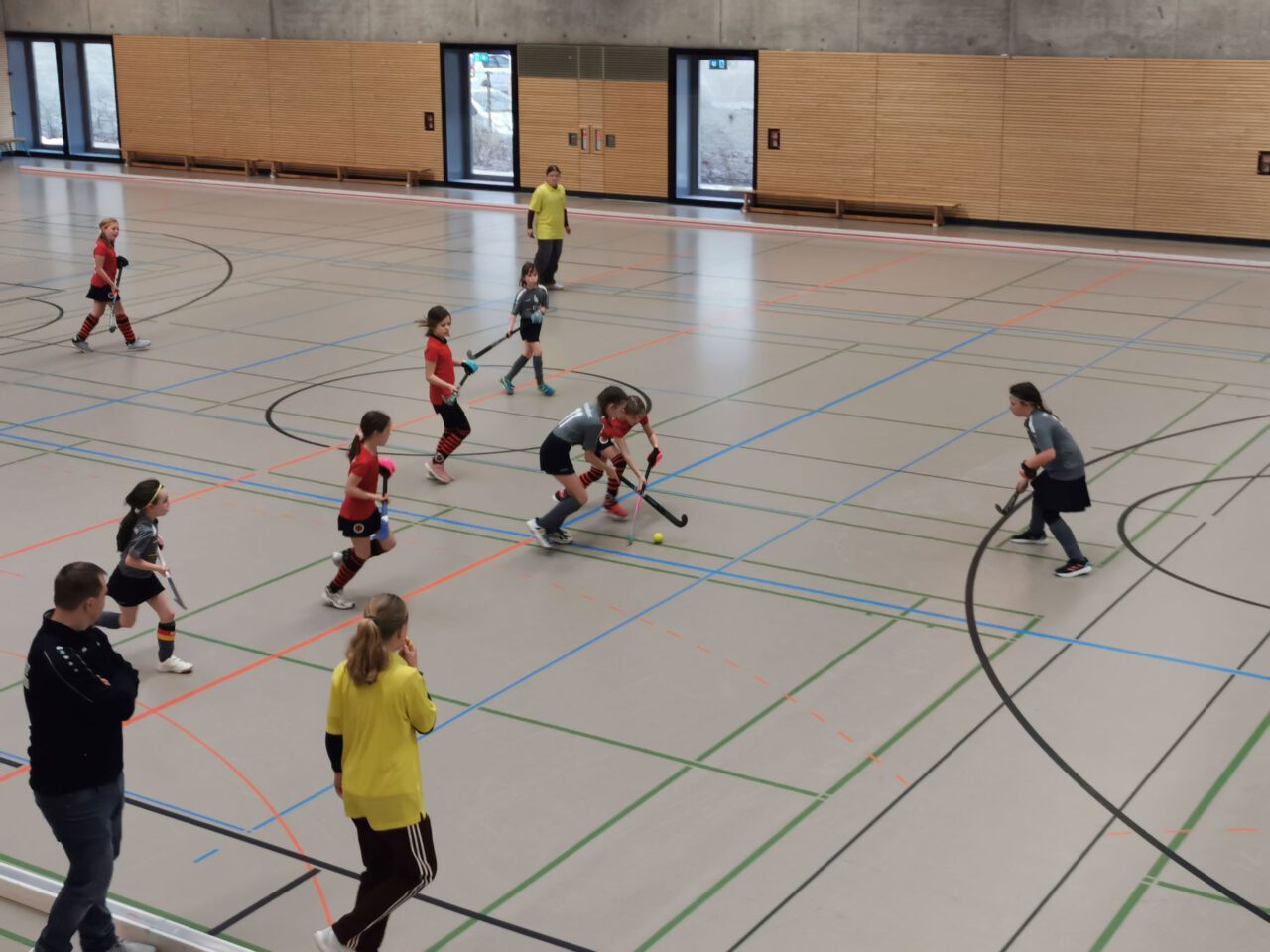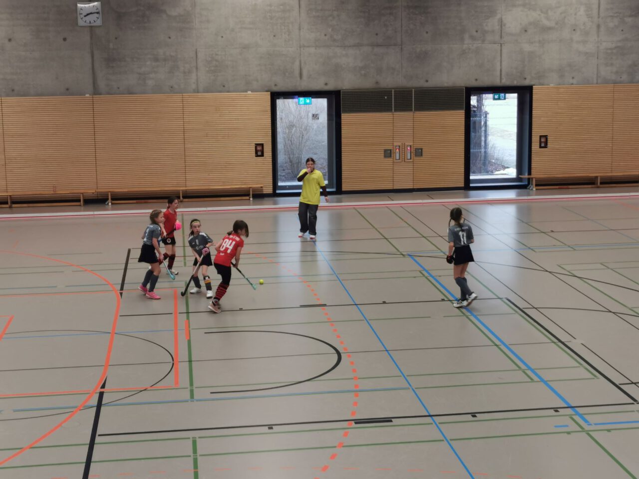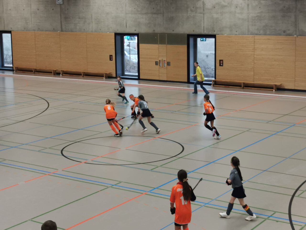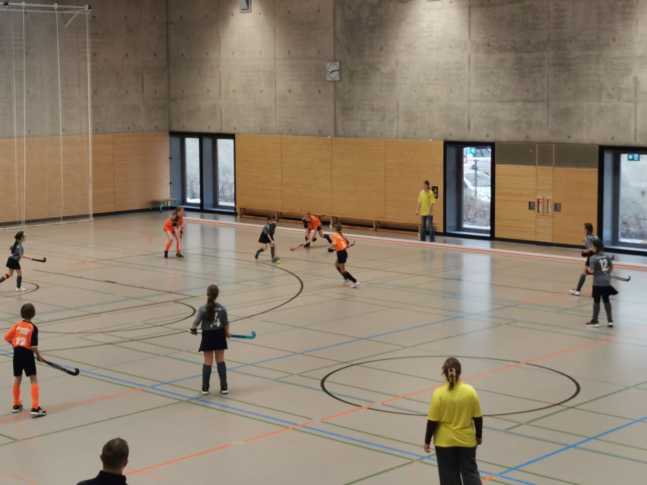 Nach über einer Stunde Fahrzeit, hieß es schnell die Hockeyausrüstung anlegen, das richtige Trikot anziehen und ab in die Halle zum Warmspielen.